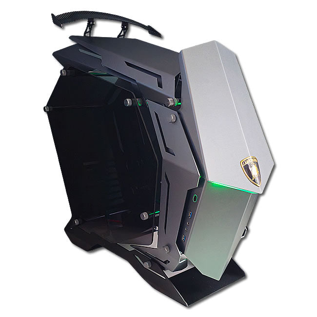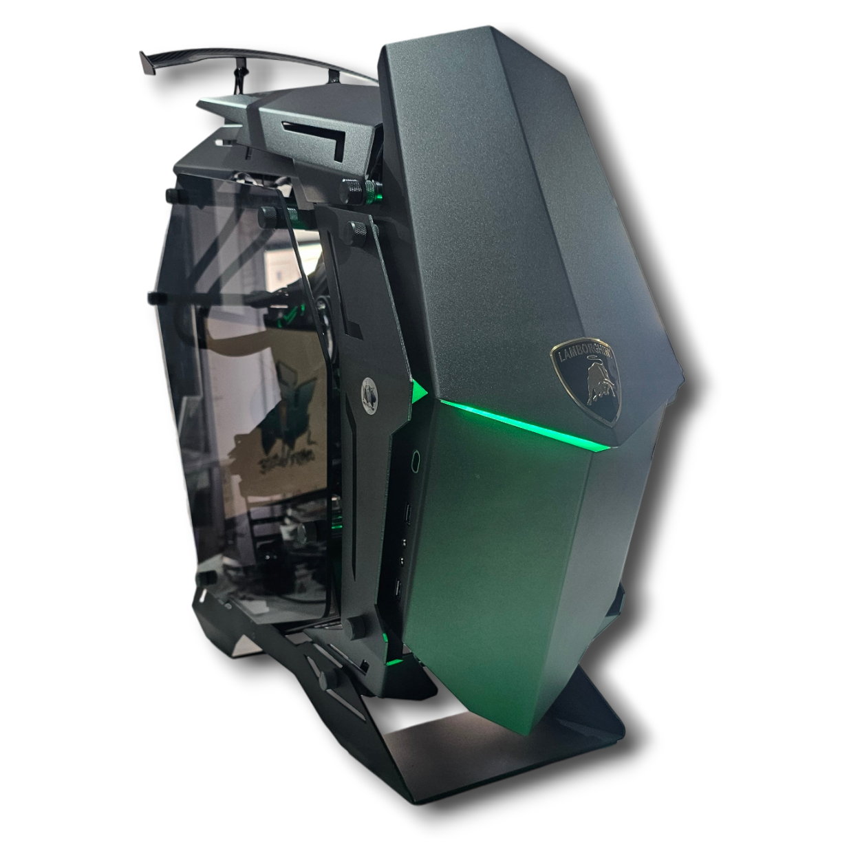 Elevate your gaming to the next level with a PC that's as exhilarating as it is powerful! Our Lamborghini-inspired Custom Gaming PC combines high-performance hardware with jaw-dropping luxury. Encased in our exclusive Lamborghini design, this gaming powerhouse features a striking professional paint job, a sleek carbon-fiber spoiler, and all the iconic Lamborghini flair.